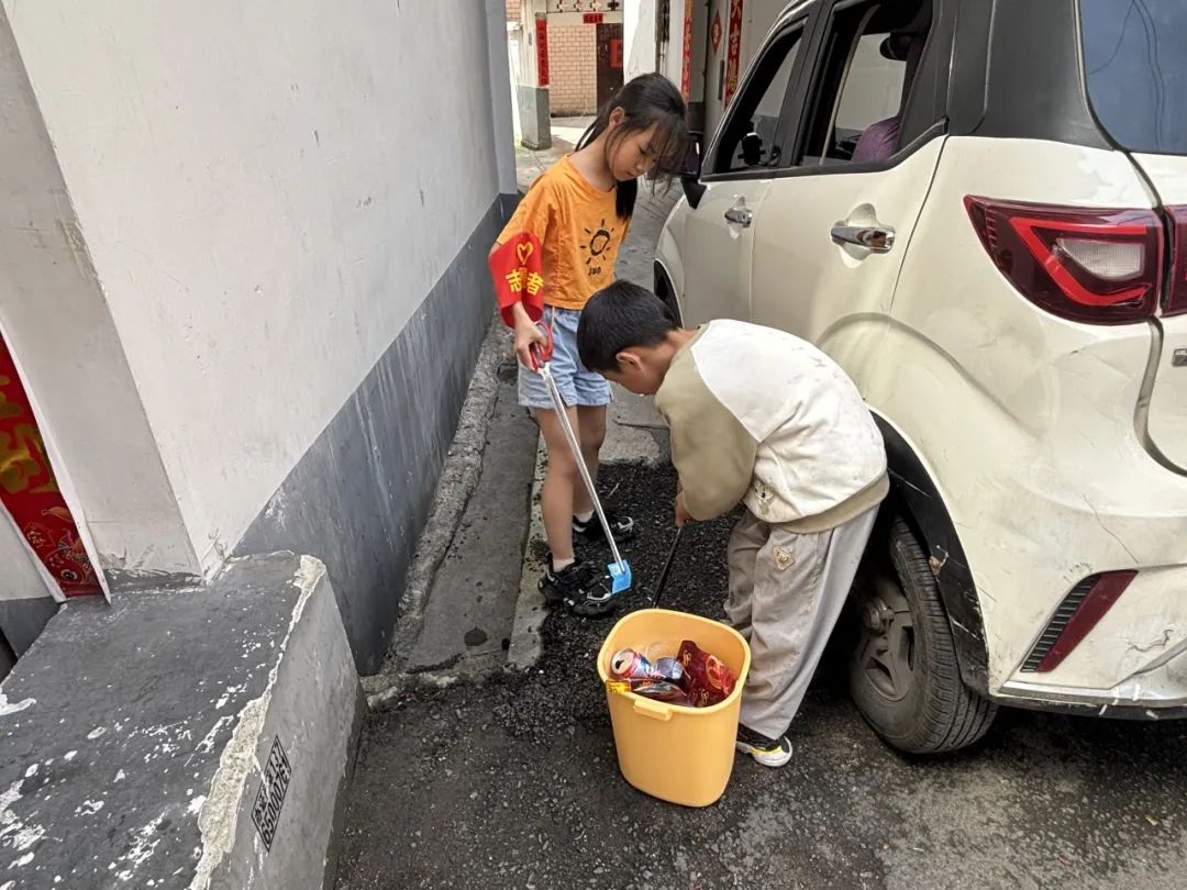 清理:垃圾清理行动,各组成员手持清洁工具,在社区道路、花坛、停车场、排水沟等区域清理散落垃圾。志愿者们用夹子、钳子、垃圾桶分工协作,小小的寨子主道路便清理出垃圾四桶,涵盖烟头、纸巾、塑料瓶、零食袋、纸壳、瓜子壳等几类常见垃圾。